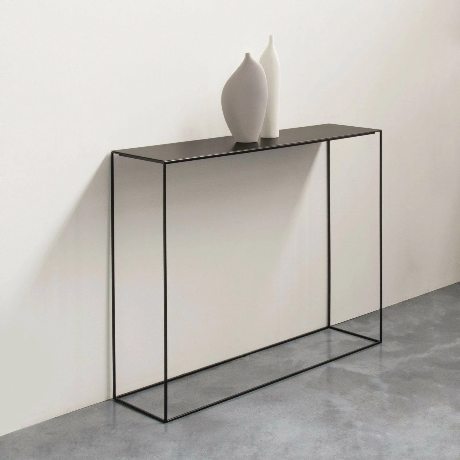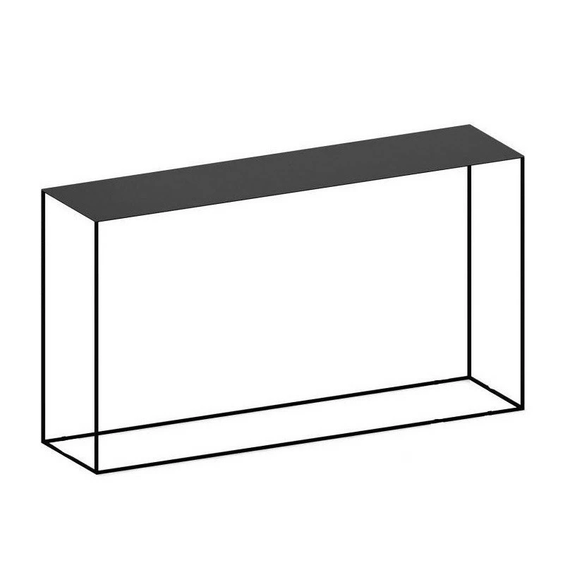 Die Slim Irony Konsole ist in verschiedenen Größen und Farbtönen erhältlich, aus hochwertigen Materialien verarbeitet und wird in Italien hergestellt. In Kombination mit den Couch- und Beistelltischen der Marke lassen sich durch Ineinanderschieben sehr individuelle Tischlandschaften gestalten, die durch die verwendeten Materialien zu einer industriellen Ästhetik verschmelzen. Das Gestell ist aus robustem Vierkantstahlrohr gefertigt und mit einer Epoxidharzlackierung versehen. Für die Ablageplatte kommt phosphatiertes Stahlblech zum Einsatz, das farblich abgestimmt zum Gestell für einen sehr puristischen Look sorgt. Phosphatiertes Stahlblech ähnelt in seiner Beschaffenheit unbehandelten Holzmöbeln. Zur Pflege sollte es regelmäßig mit Bienenwachs behandelt werden. Um die Haltbarkeit und Ästhetik der Ablageplatte zu erhalten, sollten Flüssigkeiten und Hitzequellen von der Konsole ferngehalten werden.